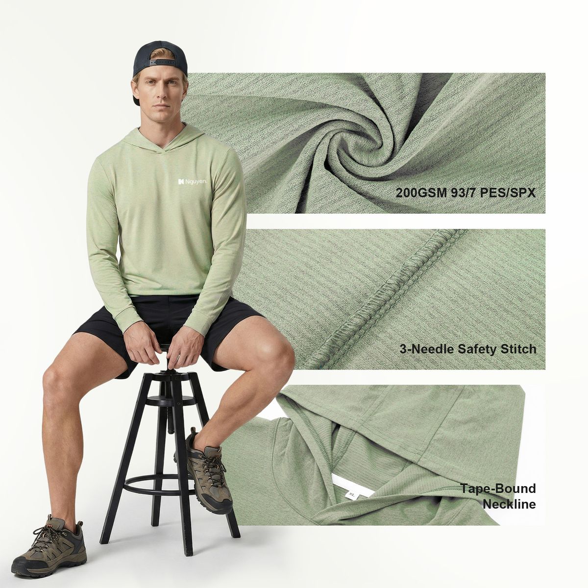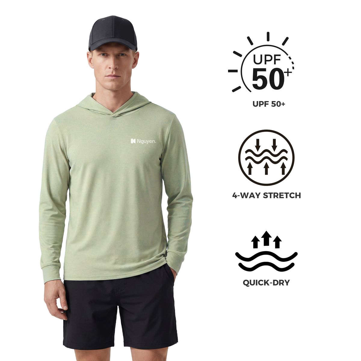 Keep cool and dry in the sunshine with this ultra-lightweight, moisture-wicking, UPF 50 hoodie. The cotton-like feel keeps you comfortable in summer while offering skin-friendly softness. Whether you're heading out on a morning walk, boat day, or just lounging by the pool, this soft and smooth tee is the perfect companion. The surface features a textured, grid-like crinkle pattern, paired with a hooded design for a casual, laid-back look. Multiple printing areas can be customized to your liking, and full-color printing available.It's your go-to choice for running, workouts, and outdoor adventures.