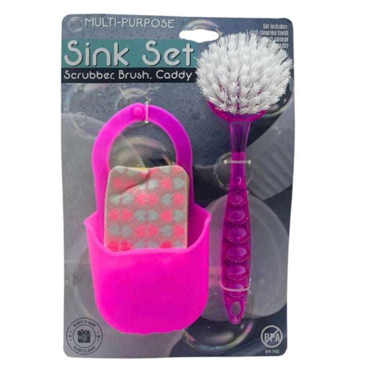 Kitchen Sink Scrubber Sets provide a thoughtful way to organize any sink area. Use this set at home or include in donation drives and re-homing kits for those in need. The caddy's self-draining feature helps prevent mess and keeps scrubbers within reach.