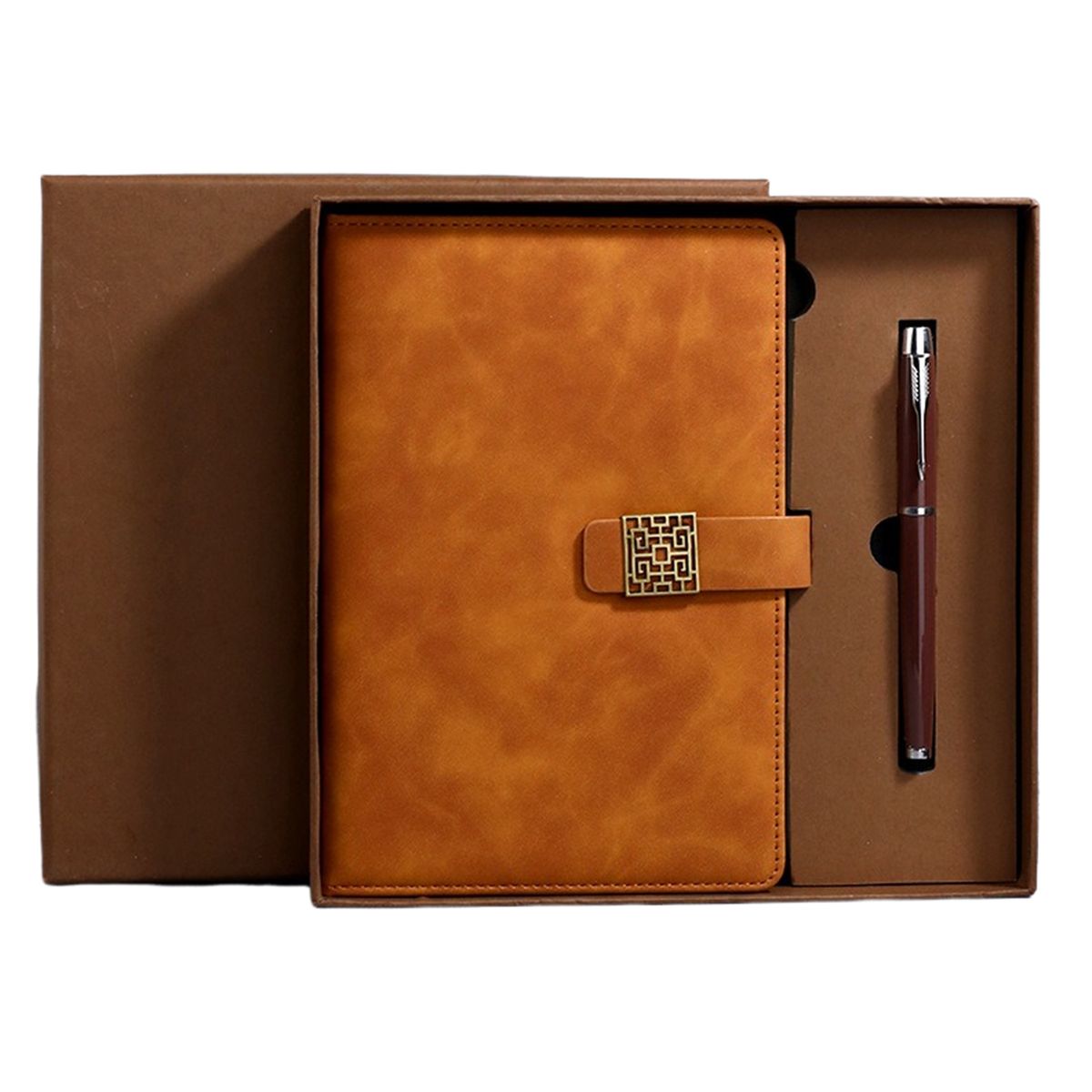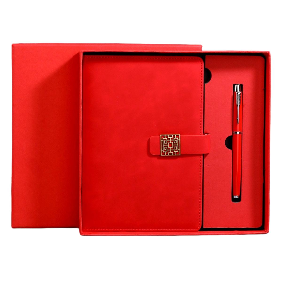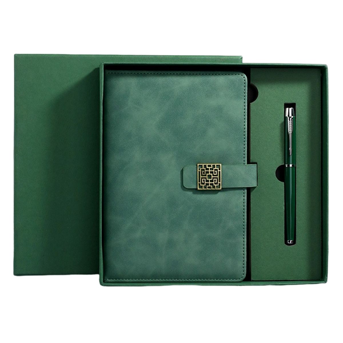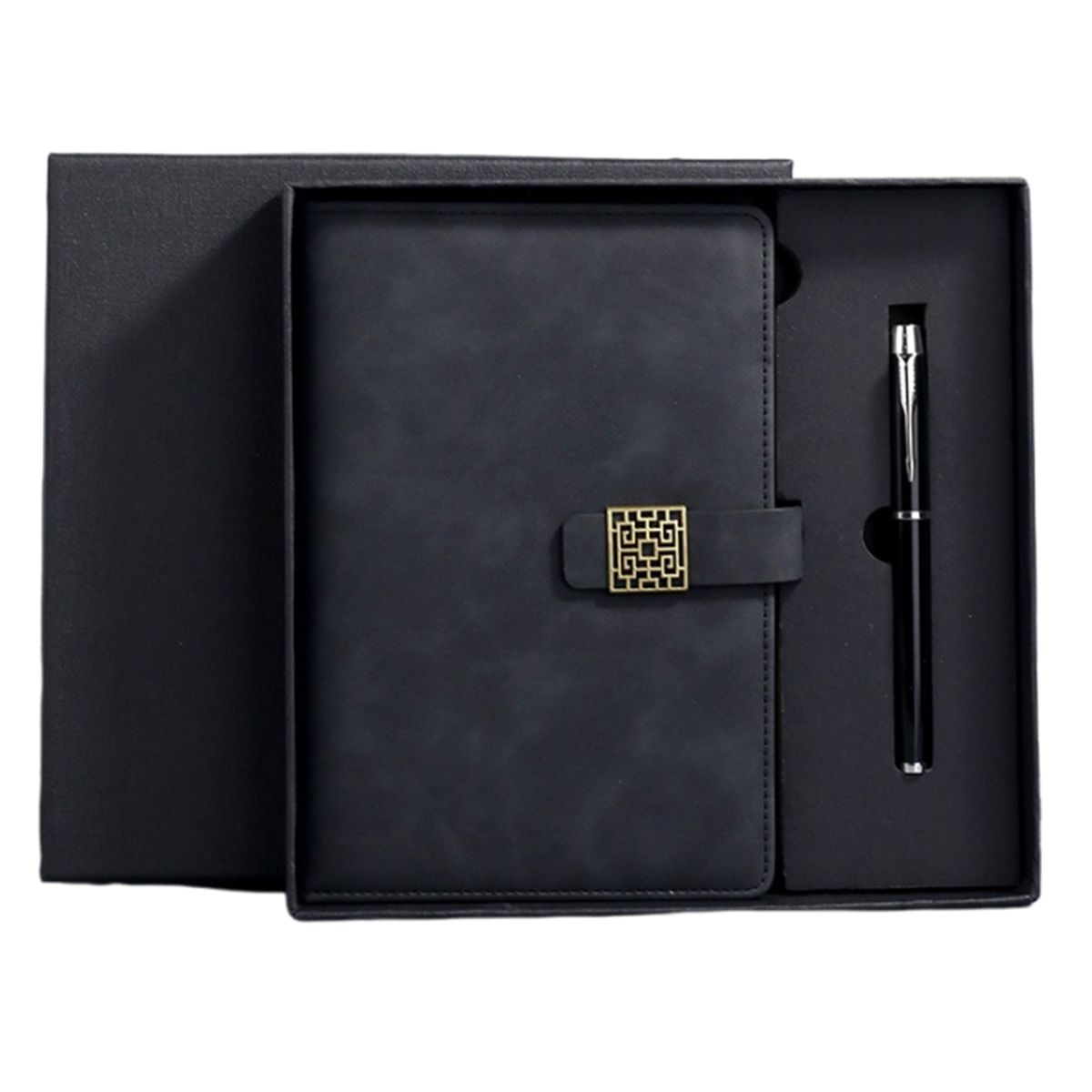 Upgrade your writing essentials with this A5 business journal and ballpoint pen gift set. Includes a thread-sewn notebook with 98 sheets of 80gsm woodfree paper, matching ballpoint pen, gift box, and paper bag. Made from high-grade color-changing PU leather with a soft skin feel, it features a magnetic buckle closure and securely bound pages. Ideal for corporate gifting and promotions with custom logo printing. Pen, gift box, and paper bag match the notebook cover (Gray set includes black pen).